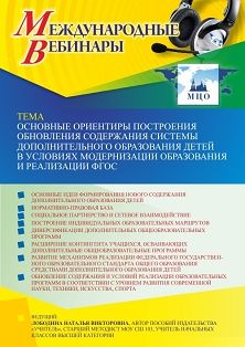 Международный вебинар Основные ориентиры построения обновления содержания системы дополнительного образования детей в условиях модернизации образования и реализации ФГОС