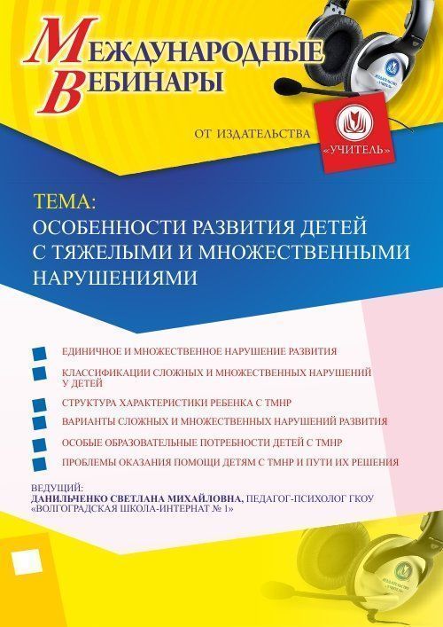 Международный вебинар "Особенности развития детей с тяжелыми и множественными нарушениями"