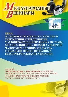 Международный вебинар Особенности закупок с участием учреждений и предприятий уголовно-исполнительной системы, организаций инвалидов и субъектов малого предпринимательства, социально ориентированных некоммерческих организаций