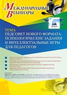 Международный вебинар Педсовет нового формата: психологические задания и интеллектуальные игры для педагогов