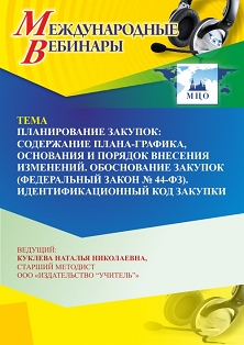 - Курс Международный вебинар Планирование закупок: содержание плана-графика, основания и порядок внесения изменений. Обоснование закупок (Федеральный закон № 44-ФЗ). Идентификационный код закупки | Маркетплейс онлайн образования Edwica
