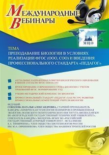 Международный вебинар Преподавание биологии в условиях реализации ФГОС (ООО, СОО) и введения профессионального стандарта “Педагог”