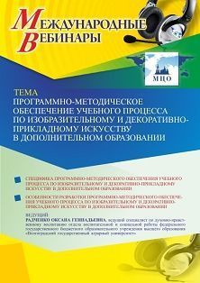 Международный вебинар Программно-методическое обеспечение учебного процесса по изобразительному и декоративно-прикладному искусству в дополнительном образовании