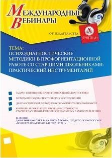 Международный вебинар "Психодиагностические методики в профориентационной работе со старшими школьниками: практический инструментарий"