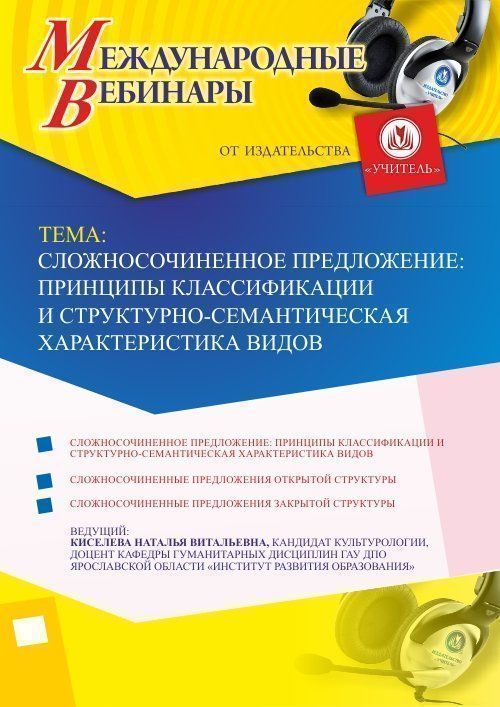 Международный вебинар "Сложносочиненное предложение: принципы классификации и структурно-семантическая характеристика видов"