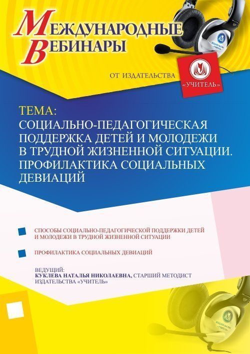 Международный вебинар "Социально-педагогическая поддержка детей и молодежи в трудной жизненной ситуации. Профилактика социальных девиаций"