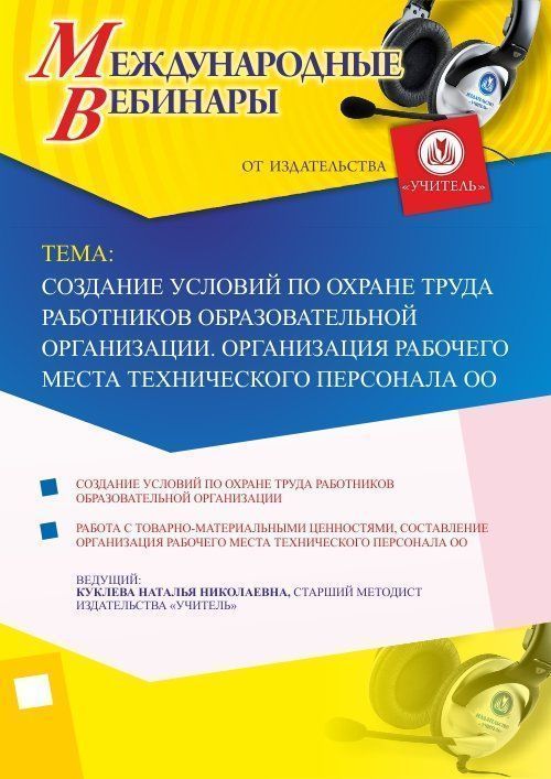 Международный вебинар "Создание условий по охране труда работников образовательной организации. Организация рабочего места технического персонала ОО"