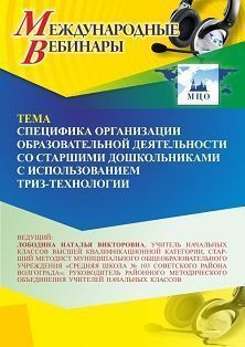 Международный вебинар Специфика организации образовательной деятельности со старшими дошкольниками с использованием ТРИЗ-технологии