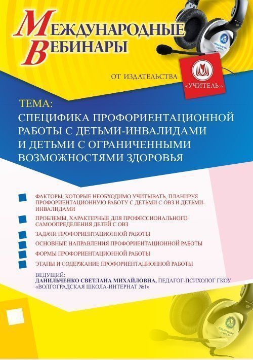 Международный вебинар "Специфика профориентационной работы с детьми-инвалидами и детьми с ограниченными возможностями здоровья"
