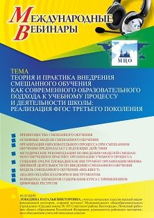 Международный вебинар Теория и практика внедрения смешанного обучения как современного образовательного подхода к учебному процессу и деятельности школы: реализация ФГОС третьего поколения