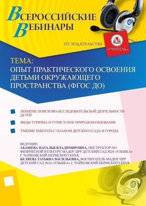 Приглашаем инструкторов по физической культуре, воспитателей и руководителей ДОО, методистов, старших воспитателей, родителей принять участие в offline-вебинаре «Опыт практического освоения детьми окружающего пространства (ФГОС ДО)».