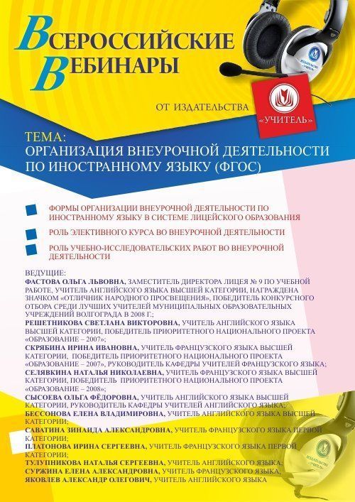 Приглашаем методистов, учителей, руководителей, педагогов дополнительного образования принять участие в offline-вебинаре «Организация внеурочной деятельности по иностранному языку (ФГОС)».