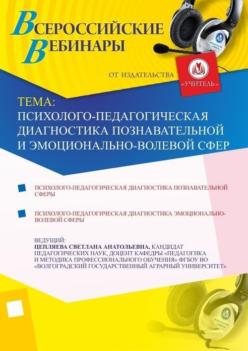 Приглашаем педагогов и специалистов среднего профессионального образования; педагогов и специалистов дополнительного профессионального образования; специалистов, не имеющих педагогического образования; студентов педагогических вузов и ссузов принять участие в offline-вебинаре «Психолого-педагогическая диагностика познавательной и эмоционально-волевой сфер».