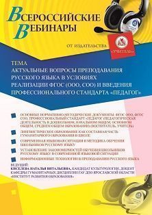 Вебинар Актуальные вопросы преподавания русского языка в условиях реализации ФГОС (ООО, СОО) и введения профессионального стандарта "Педагог"
