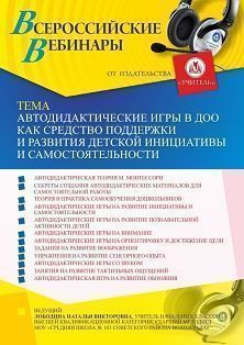 Вебинар Автодидактические игры в ДОО как средство поддержки и развития детской инициативы и самостоятельности