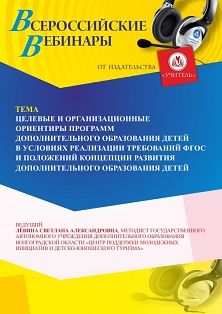 Вебинар Целевые и организационные ориентиры программ дополнительного образования детей