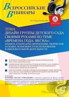Вебинар Дизайн группы детского сада своими руками по теме Времена года. Весна: правила и варианты оформления, творческие находки, возможности использования в образовательной деятельности