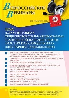 Вебинар Дополнительная общеобразовательная программа технической направленности “Мастерская Самоделкина” для старших дошкольников