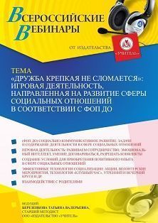 Вебинар “Дружба крепкая не сломается”: игровая деятельность, направленная на развитие сферы социальных отношений в соответствии с ФОП ДО