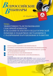 Вебинар Эффективность использования сенсорной комнаты в оказании психолого-педагогической помощи и поддержки обучающимся с различными нарушениями в развитии