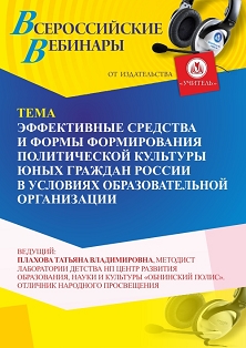 Вебинар Эффективные средства и формы формирования политической культуры юных граждан России в условиях образовательной организации