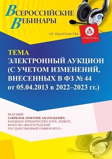 Вебинар Электронный аукцион (с учетом изменений, внесенных в ФЗ № 44 от 05.04.2013 в 2022 - 2023 г. г.)
