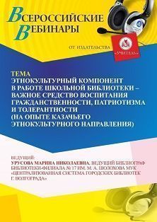 Вебинар Этнокультурный компонент в работе школьной библиотеки – важное средство воспитания гражданственности, патриотизма (на опыте казачьего этнокультурного направления)