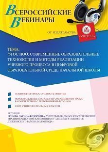 Вебинар ФГОС НОО. Современные образовательные технологии и методы реализации учебного процесса в цифровой образовательной среде начальной школы