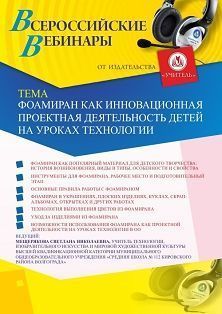 Вебинар Фоамиран как инновационная проектная деятельность детей на уроках технологии