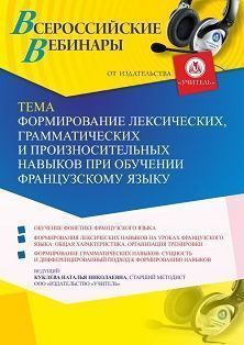 Вебинар Формирование лексических, грамматических и произносительных навыков при обучении французскому языку