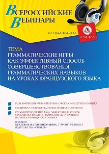 Вебинар Грамматические игры как эффективный способ совершенствования грамматических навыков на уроках французского языка