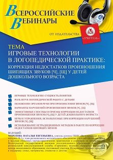 Вебинар Игровые технологии в логопедической практике: коррекция недостатков произношения шипящих звуков [ч], [щ] у детей дошкольного возраста