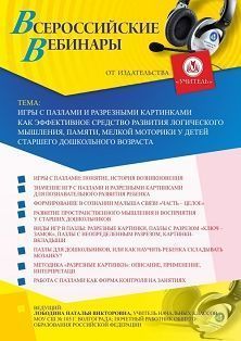 Вебинар Игры с пазлами и разрезными картинками как эффективное средство развития логического мышления, памяти, мелкой моторики у детей старшего дошкольного возраста