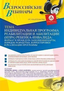 - Курс Вебинар Индивидуальная программа реабилитации и абилитации (ИПРА) ребенка-инвалида: формат и процедура заполнения карты, порядок разработки, корректировки и реализации программы | Маркетплейс онлайн образования Edwica