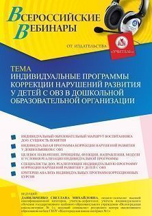 Вебинар Индивидуальные программы коррекции нарушений развития у детей с ОВЗ в дошкольной образовательной организации