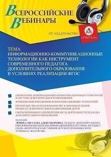 Вебинар Информационно-коммуникационные технологии как инструмент современного педагога дополнительного образования в условиях реализации ФГОС