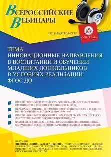 Вебинар Инновационные направления в воспитании и обучении младших дошкольников в условиях реализации ФГОС ДО