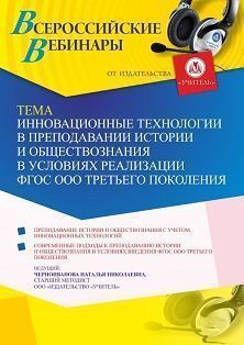 Вебинар Инновационные технологии в преподавании истории и обществознания в условиях реализации ФГОС ООО третьего поколения