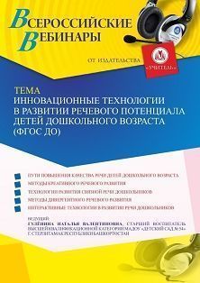 Вебинар Инновационные технологии в развитии речевого потенциала детей дошкольного возраста (ФГОС ДО)