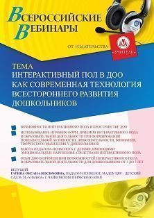 Вебинар Интерактивный пол в ДОО как современная технология всестороннего развития дошкольников