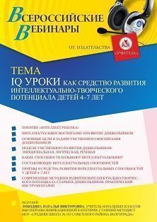 Вебинар IQ уроки как средство развития интеллектуально-творческого потенциала детей 4 – 7 лет
