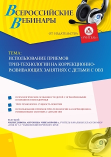 Вебинар "Использование приемов ТРИЗ-технологии на коррекционно-развивающих занятиях с детьми с ОВЗ"