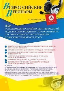 Вебинар Использование семейно-центрированной модели сопровождения особого ребенка для эффективного его включения в образовательную среду ОО