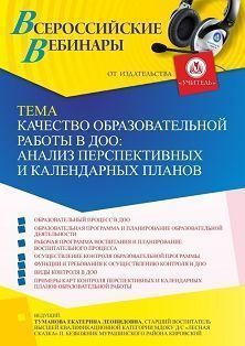 Вебинар Качество образовательной работы в ДОО: анализ перспективных и календарных планов