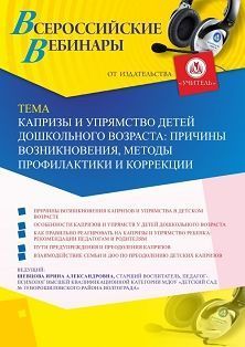 Вебинар Капризы и упрямство детей дошкольного возраста: причины возникновения, методы профилактики и коррекции