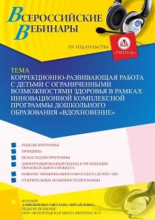 Вебинар Коррекционно-развивающая работа с детьми с ограниченными возможностями здоровья в рамках инновационной комплексной программы дошкольного образования “Вдохновение”