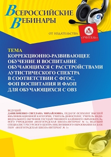 Вебинар Коррекционно-развивающее обучение и воспитание обучающихся с расстройствами аутистического спектра в соответствии с ФГОС, ФОП воспитания и ФАОП для обучающихся с ОВЗ