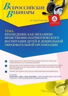 Вебинар Краеведение как механизм нравственно-патриотического воспитания детей в дошкольной образовательной организации
