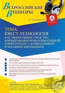 Вебинар Квест-технология как эффективное средство формирования коммуникативной компетенции у дошкольников и младших школьников