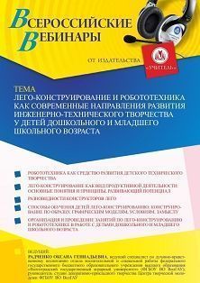 Вебинар Лего-конструирование и робототехника как современные направления развития инженерно-технического творчества у детей дошкольного и младшего школьного возраста